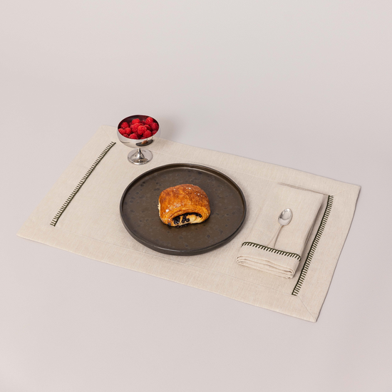 - Le tovagliette Onda sono rifinite da un elegante e sinuoso ricamo a contrasto